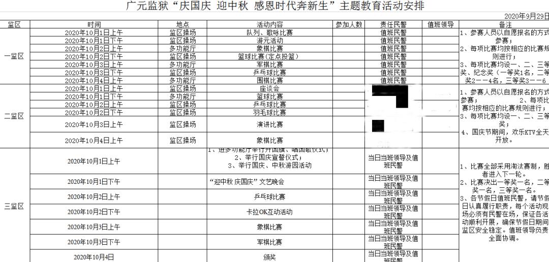 加强现场警力保障监狱落实值班领导责任制,指定专人负责节日期间各项活动的组织实施,值班警务组全员参与配合,切实保障活动规范有序开展,使罪犯度过一个欢乐而有意义的“双节”。
