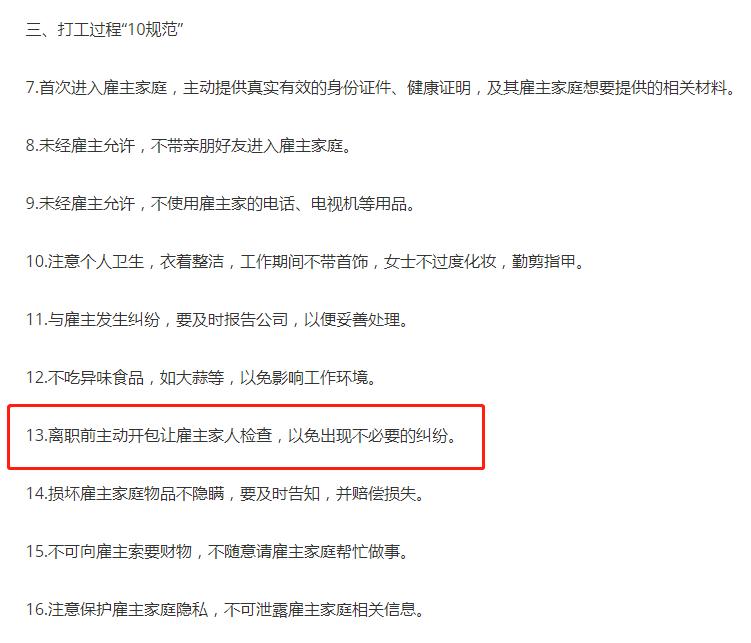 原标题:《离职前主动开包检查,上海首个保姆守则来了!网友炸锅了……》
