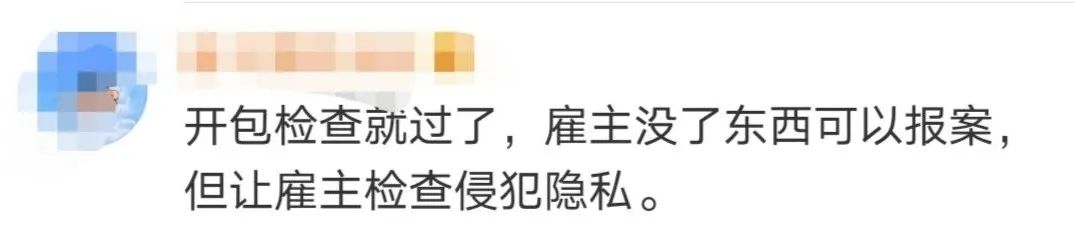 “离职前主动开包让雇主家人检查”