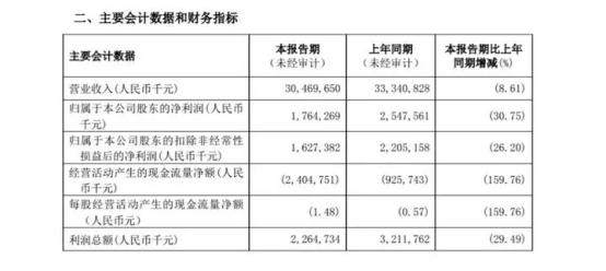 据公司发布的2020年中报显示,2020年上半年,白云山实现营业收入304.70亿元,同比下滑8.61%;实现归母净利润17.64亿元,同比下滑30.75%;经营现金流净额为-24.05亿元。