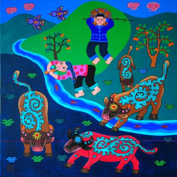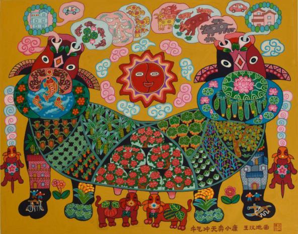 作品名称《牛气冲天奔小康》(“决胜全面小康”第二届全国农民画画展获奖)
