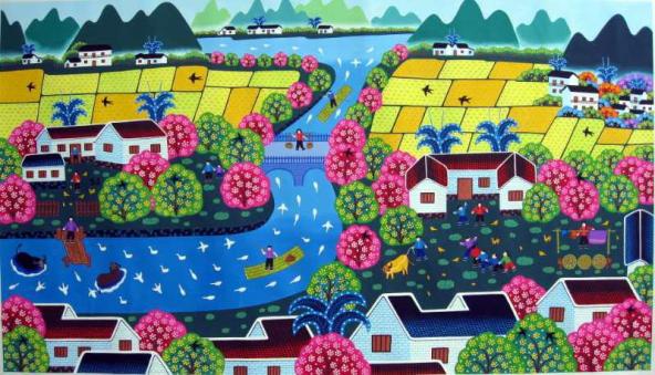 龙门农民画以其浓郁的乡土艺术特色和积极健康的内容,体现了人们对自然、风俗、生活、劳动、爱情、社会的思考,寄托了人们对幸福生活和美好理想的追求。