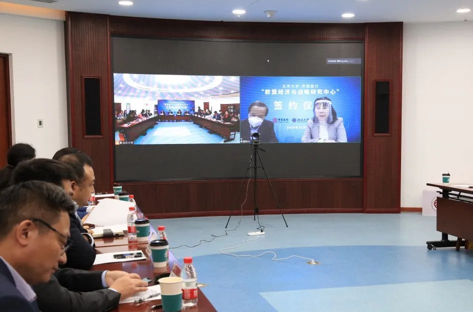 2020年10月14日,北京大学—中国银行—欧盟中国商会“欧盟经济与战略研究中心”工作机制研讨会在北京大学经济学院101会议室举办。