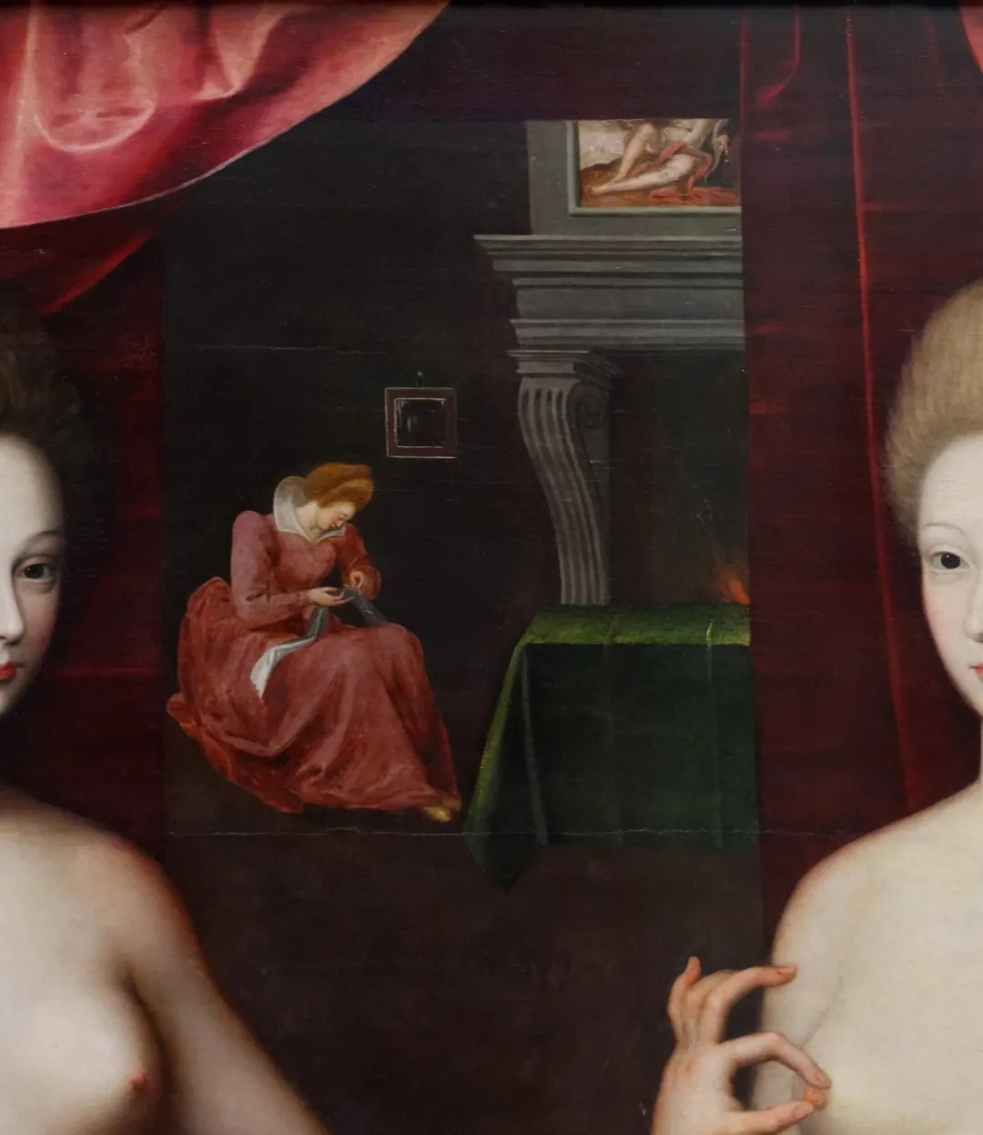 ▲ 油画《加布里埃尔·德·艾丝特雷和她的一位姐妹》(1594,局部)