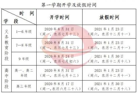 明确我省中小学 2020-2021 学年度开学放假时间安排