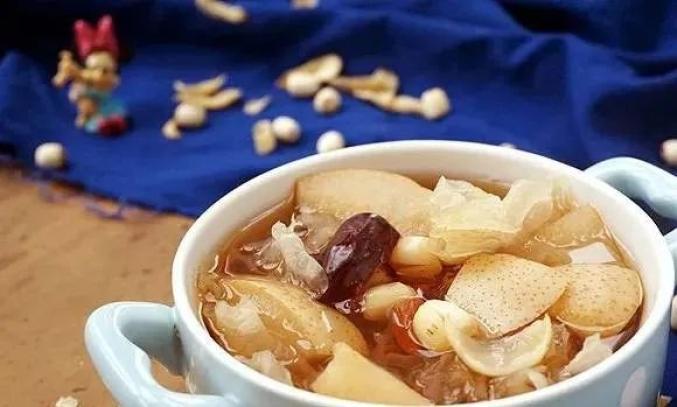 做法:① 将莲子、银耳发开、洗净,雪梨去皮核、切片,同入锅中;
