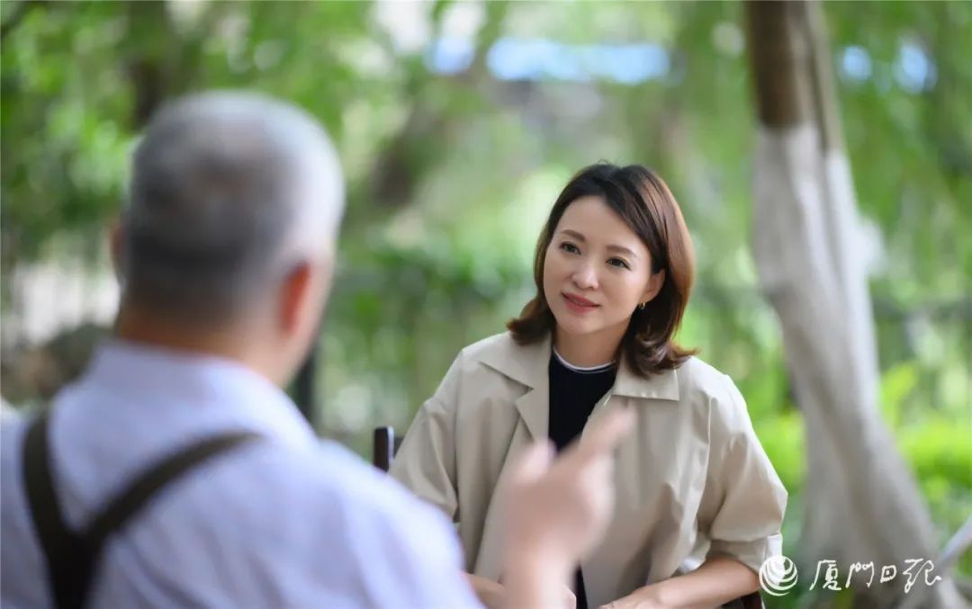 董卿来厦门为“一平方米”朗读亭直播活动做前采调研。(资料图)