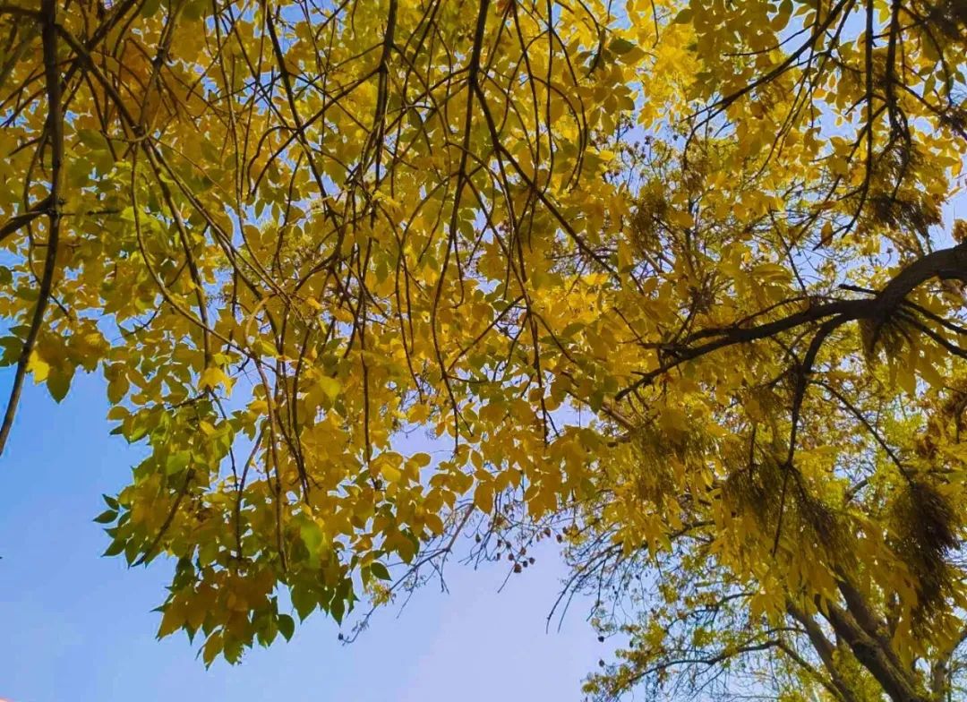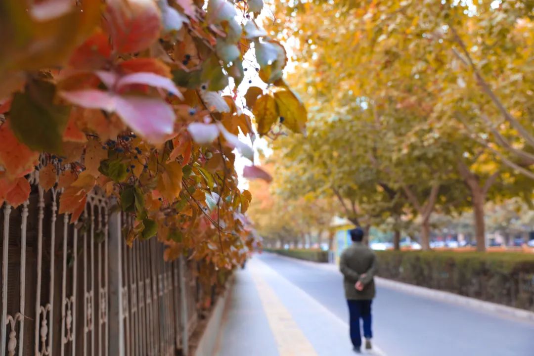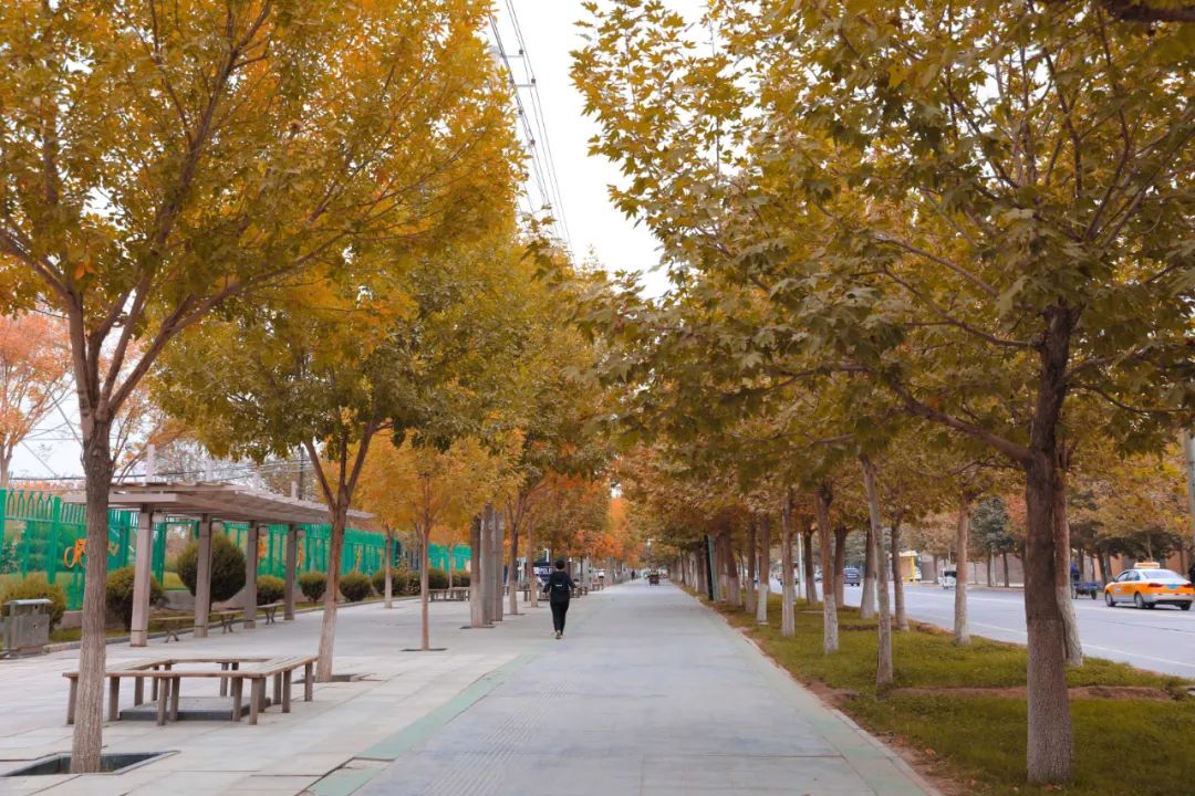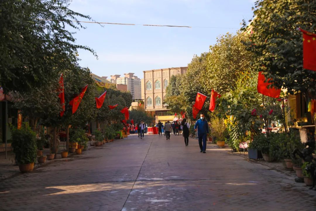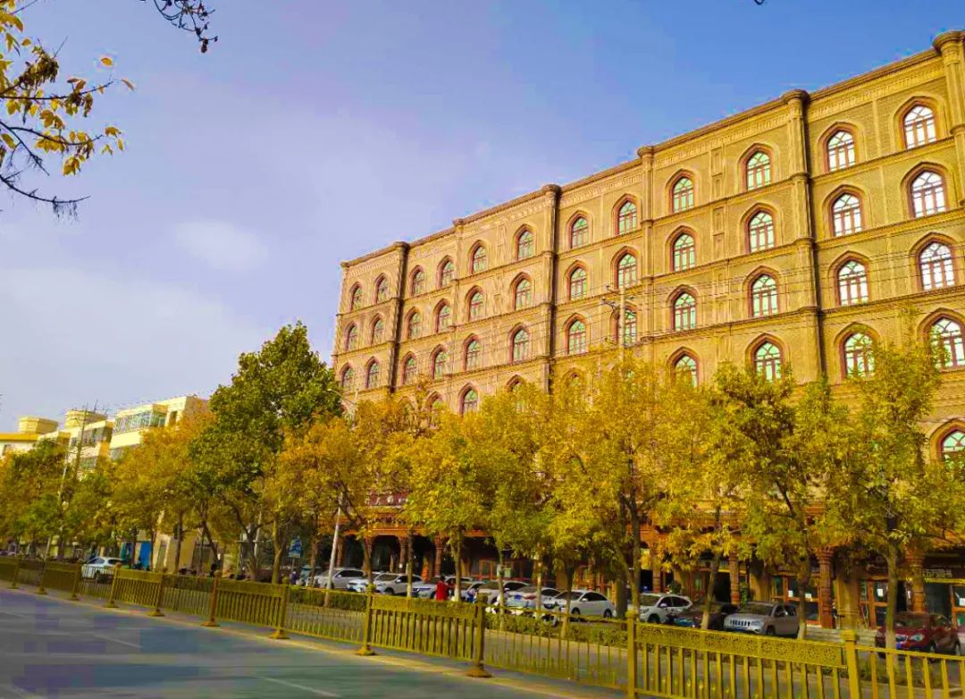 当然,喀什秋天的美不仅仅在古城,走在喀什市区的道路上,道路两旁高大的梧桐树,一树金黄的叶子,经秋风一吹,在空中打着璇儿,像蝴蝶一样轻盈飘落。碧绿的爬山虎颜色渐渐转成深红色,和青砖砌的墙交相辉映,更显出秋天的独特韵味。闹热的柳树、杨树赶着趟儿迎接秋天,纷纷将叶子变成独属于这个季节的金黄色,成就了摄影爱好者的底片,也让这座城市在收获的季节里,更加欣喜、温暖。