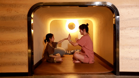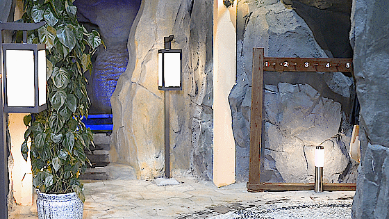 隐藏在“洞穴”内的硫磺泡池,仿照远古时代的沐浴疗法,