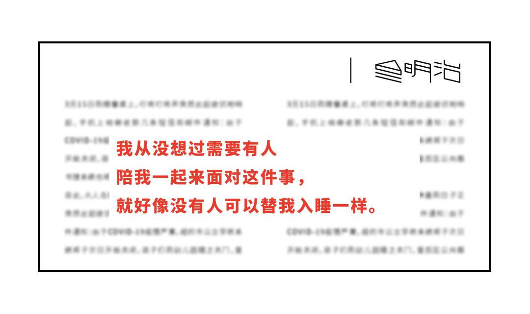 我也从没想过需要有人陪我一起来面对这件事,就好像没有人可以替我入睡一样。