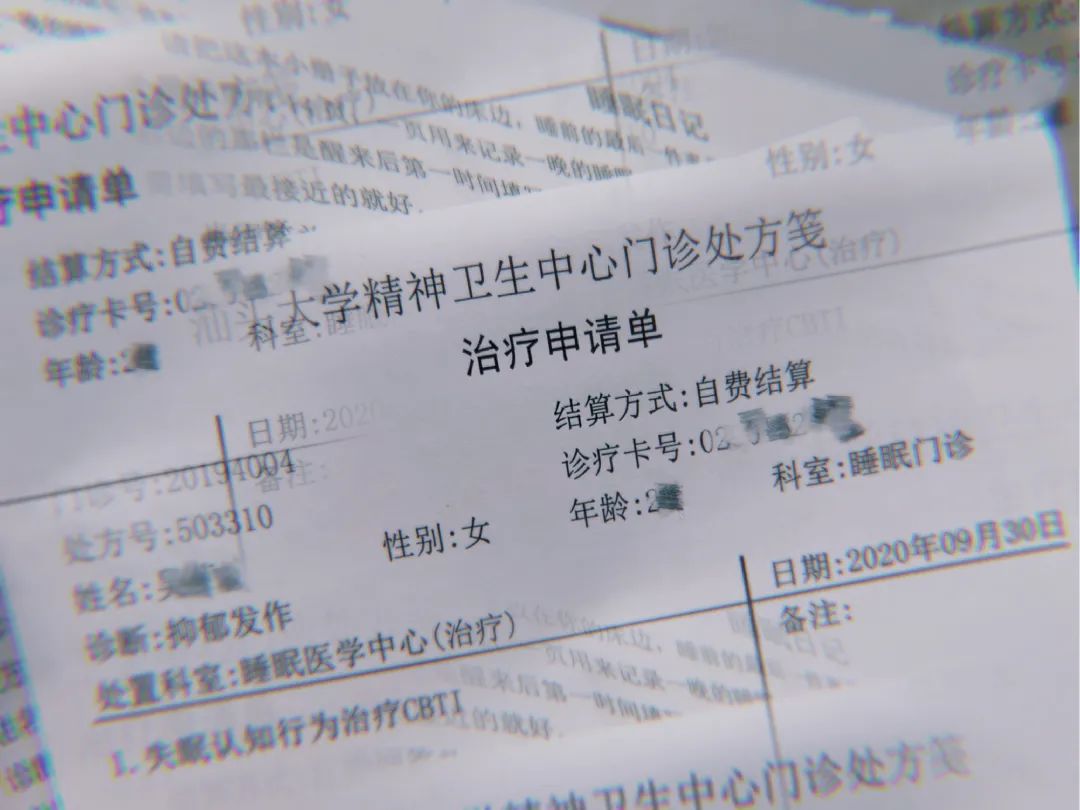 医生问了我一些基础的问题,例如失眠多久,一般多久入睡,情绪如何,有没有自残行为,有没有自杀念头等等,一边在测量表上勾勾写写,最后在诊断结果那里轻飘飘地写了“轻度抑郁”四个字,把诊疗卡还给我,说去缴费然后拿药,按照说明吃就好了。全程10分钟。我也不敢多问,就默默拉着男朋友退出来了。