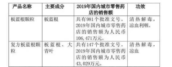 白云山和黄公司生产的复方板蓝根颗粒2019年销售收入约为人民币10,910.07万元,占该公司当年销售收入的7.23%;2020年上半年销售收入约为人民币7,554.61万元,占该公司同期销售收入的8.35%。复方板蓝根颗粒的销售预计不会对本公司的经营业绩构成重大影响。