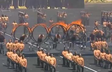 ▲当地时间15日,埃及警官学校举行毕业典礼。演出中,学生们先展示了空翻、搏斗、攀爬、索降等专业技能,随后开始赤膊上阵大秀肌肉,展示了胸口碎大石、钻火圈、等“绝活”。包括埃及总统阿卜杜勒·法塔赫·塞西在内的多位领导人也观看了这场典礼。