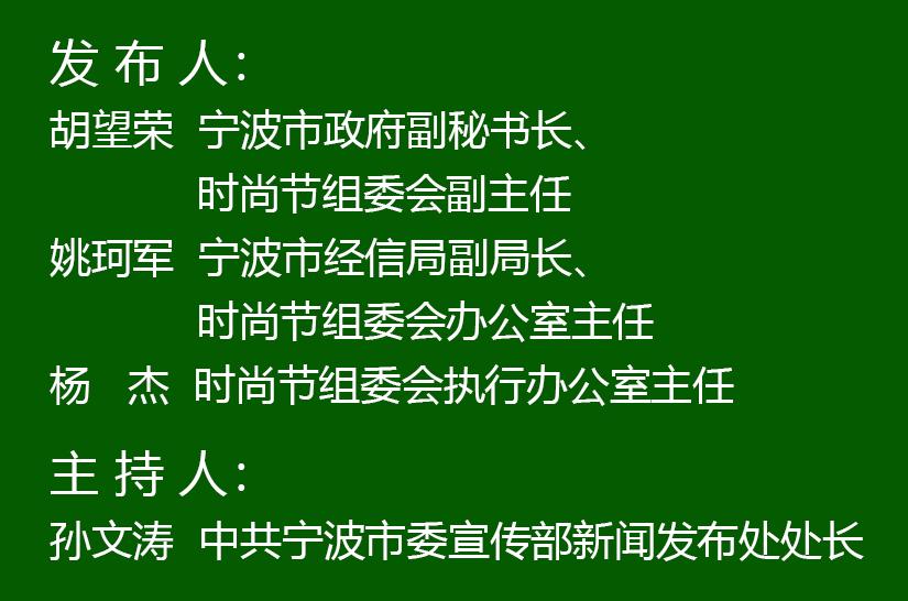 今天下午,宁波市人民政府新闻办公室召开新闻发布会。2020宁波时尚节暨第24届宁波国际服装节将于10月22日—24日举办。宁波市政府副秘书长、时尚节组委会副主任胡望荣,宁波市经信局副局长、时尚节组委会办公室主任姚珂军,时尚节组委会执行办公室主任杨杰就活动情况进行介绍并答记者问。