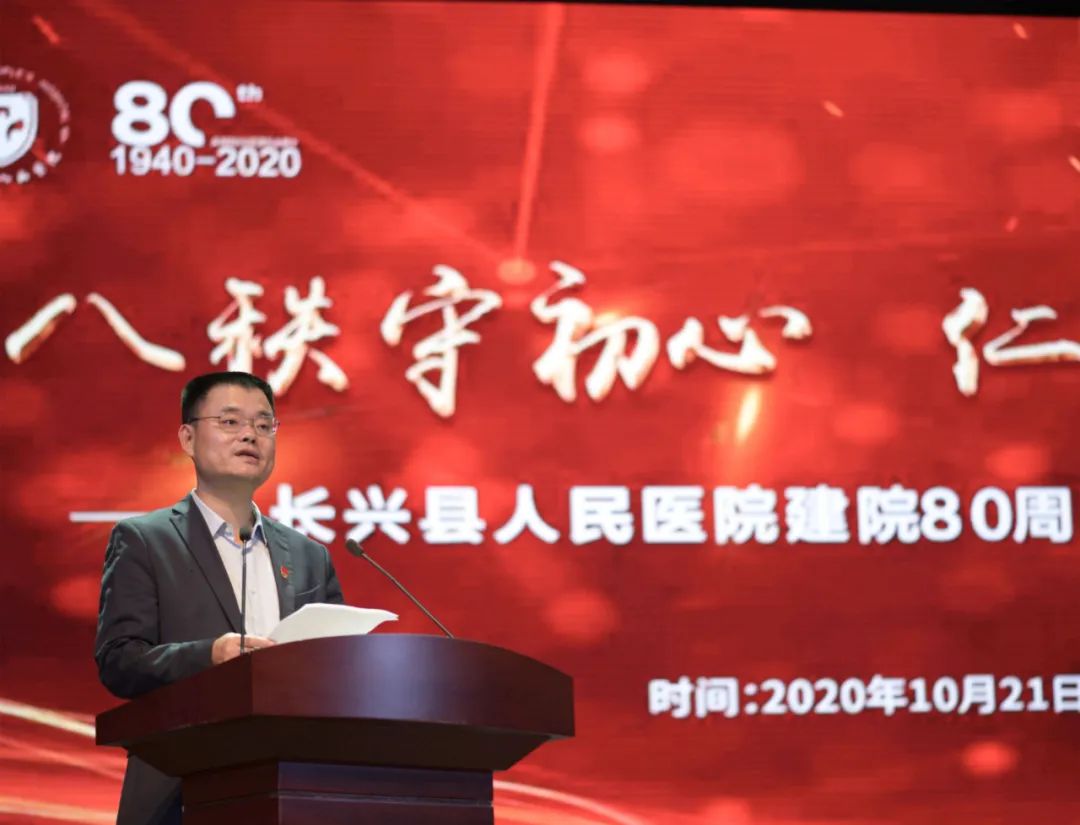 周卫兵首先代表县委县政府讲话。他表示,作为县域医疗龙头的长兴县人民医院,在80年的发展历程中,由小到大,由弱到强,先后与多家省内外名医大院结对合作,全力打造医联体、医共体,实现了长兴百姓在家门口就能看名医的愿望。在应对此次新冠疫情中,医院勇挑重担,先后派出16名医护人员援鄂抗疫;同时,承担并治愈了全县唯一的一例新冠肺炎确诊患者,交出了疫情防控的满意答卷;对县人民医院多年来的不懈努力和艰苦付出,表示衷心的感谢!