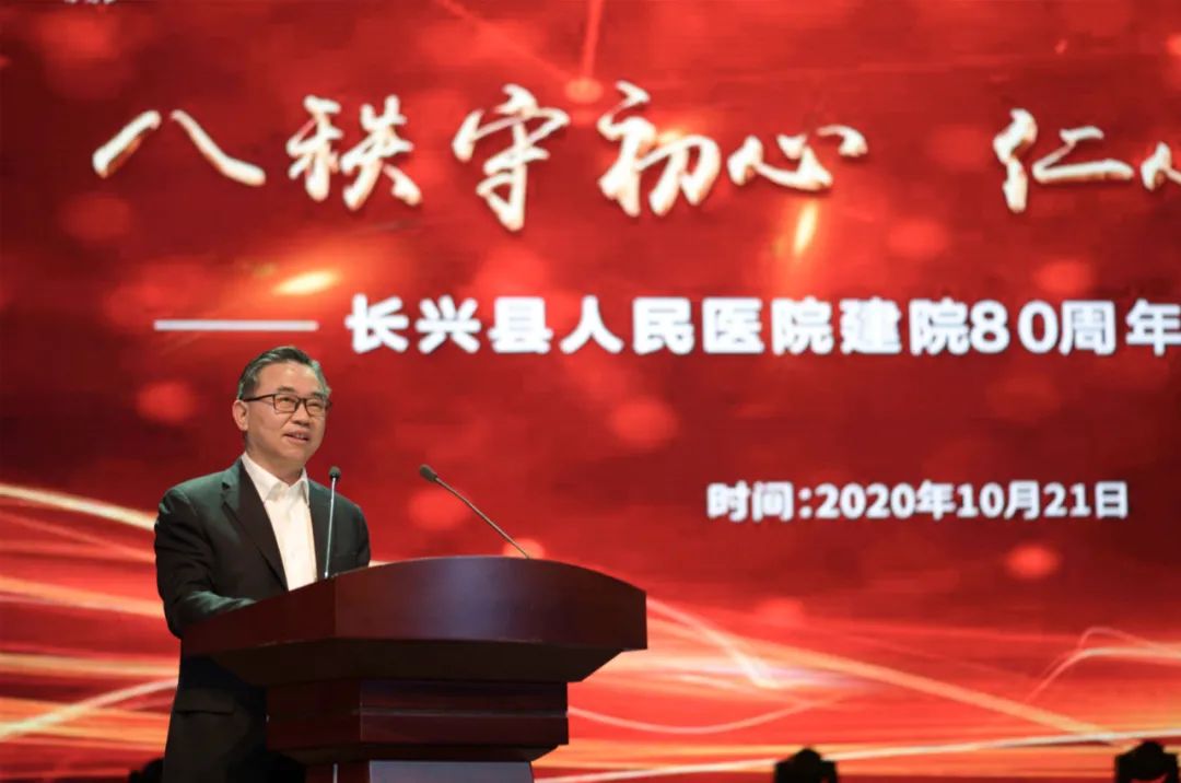 陈新年代表在外工作的乡贤致辞。他说,“八十年来,特别是改革开放以来,长兴县人民医院在党和政府的领导、关心和支持下,经过几代人的奋力拼搏,从一个简陋的医务所,建成湖州市县级医院中,唯一的三级乙等综合性医院。”医院在积极提升硬件水平的同时,医疗水平、医疗质量、医疗安全明显提高,为长兴人民的健康做出了重要贡献!