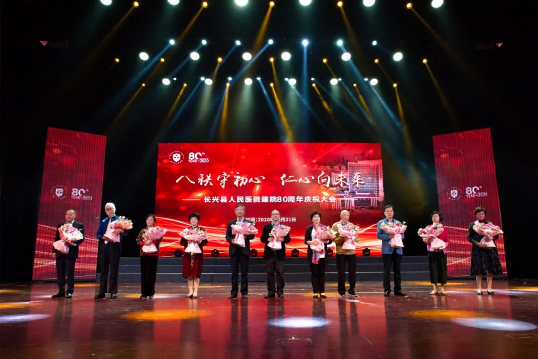 今天晚上7时,长兴县人民医院建院80周年庆祝大会在长兴大剧院隆重召开。中共长兴县委书记周卫兵,解放军总后勤部卫生部原副部长陈新年少将,浙大二院党委副书记、院长王伟林,县领导徐骍、陈峰、周文胜,驻长部队领导李元初等出席大会;浙大二院党委书记王建安通过视频录播的形式向大会的召开表示祝贺;浙大二院代表、湖州中心医院代表、长兴籍在外工作的医疗卫生领域优秀代表,各乡镇(街道、园区)、医改领导小组相关部门领导,县卫健局和各医疗卫生单位负责人,县人民医院历任院领导及部分家属代表、人民医院医共体集团职工代表等齐聚一堂、共襄盛会。大会采用线下集会和线上直播方式向会场内外同步全程播出,大会由医院党委书记孙海明主持。