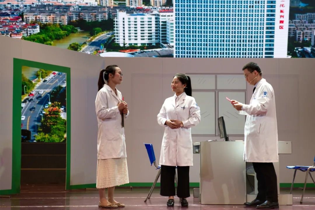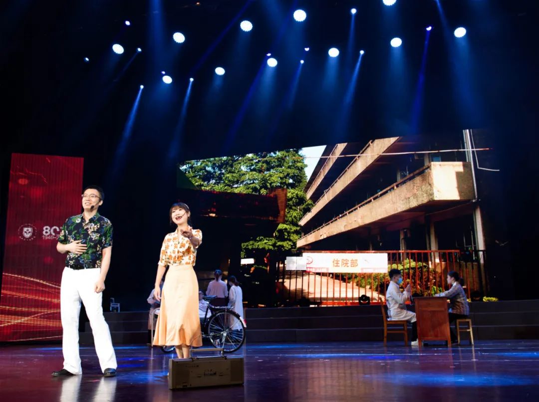 庆祝大会第二阶段在欢快的歌伴舞《再一次出发》中开启。随后,诗朗诵《走过岁月》、献花互动《感恩医路有你》、人物访谈《医路心声》、时代秀《一路前行》、VCR《远方的祝福》、小品《最好的礼物》等节目,展现了人医人蓬勃向上的精神风貌,凝聚了砥砺奋进建设人民满意医院的强大合力。