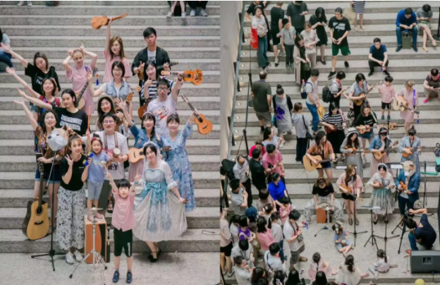 热情似火,来自Baila Asi 音乐舞蹈工作室的古巴Milaila老师再现外滩源!Salsa莎莎舞起源于南美国家,节奏感强烈且热情迷人。最大的魅力来自于欢快的拉丁风格,缠绵奔放,色彩浓重。上世纪60年代末,在美国融合了爵士舞的风格,变得更有娱乐性和表现力,并开始在世界各地流行起来。本次Milaila老师向大家展示迷人的莎莎舞世界, 狂欢且变换迷人的舞步带领大家来到美好浪漫的世界,让轻盈洒脱的舞步让大家忘却烦恼!来一场千人Salsa舞会,让欢快的氛围燃烧现场!FLASHUKERS欢乐团—刷爆朋友圈的尤克里里快闪