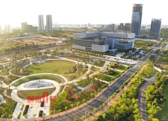 位于柳东新区内正在建设的柳州市民服务中心及外部园林景观