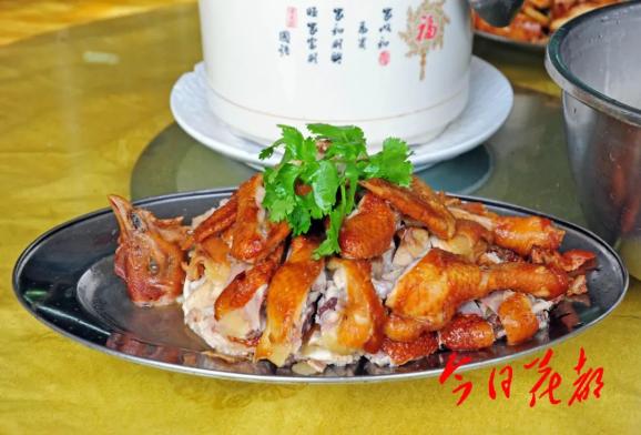 用的是自养青头鸭,配置少许干桂花,以文火慢蒸而成,其味道清香独特,汤汁透亮,原色原味。5