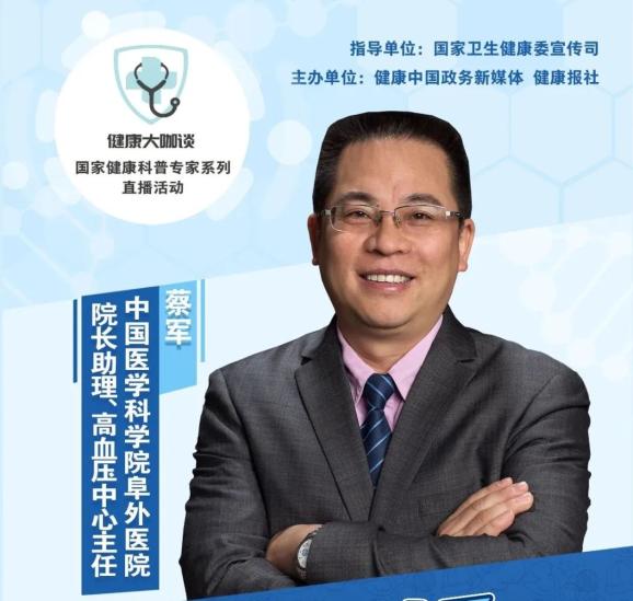 10月9日,中国医学科学院阜外医院院长助理、高血压中心主任蔡军做客“健康知识普及行动——健康大咖谈”直播间,围绕公众关心的高血压防治问题进行了权威解答,在此带您快速浏览核心要点。