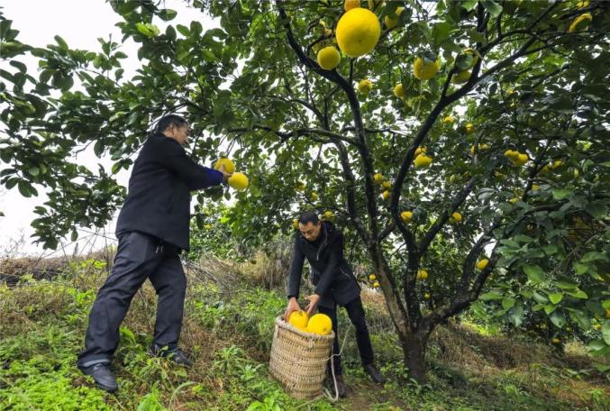 荫平镇乐英村,游客在体验采摘柚子的乐趣。(资料图)