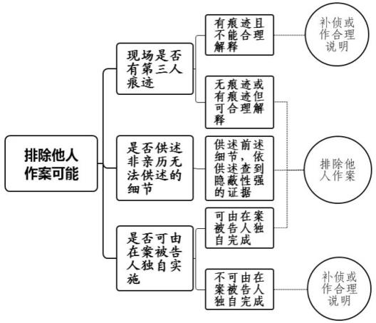 在认罪供述得到印证型命案中,排除第三人作案、排除第三人配合作案和冒名顶替等情形是构建完整证据链条不可或缺的环节,需要法官对被告人的供述与查证的其他证据进行比对分析和综合判断。既要确保各个证据所印证的事实不存在矛盾之处,也要确保诸项证据印证事实串联之后指向的结论事实具有唯一性,还要确保完全排除嫌疑人通过其他途径获知相关作案细节后予以供述的可能。因此,有必要针对本类命案构建包含单一证据审查和关联证据分析在内的综合分析方法。