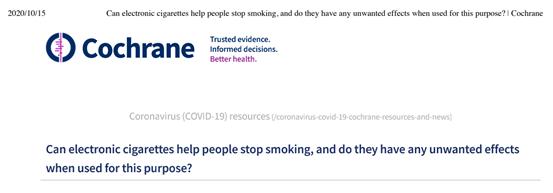 Cochrane:《Can electronic cigarettes help people stop smoking, and do they have any unwanted effects when used forthis purpose? 》
