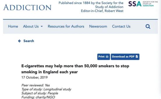 “电子烟能否有效戒烟”一直是备受关注的话题。但由于国内电子烟的系统科学研究尚不完整,大众很难及时得知准确的研究结果。这导致了电子烟的戒烟效果被很多人所忽视,一些专家甚至基于偏见而非科学,对电子烟的戒烟效果进行否定。