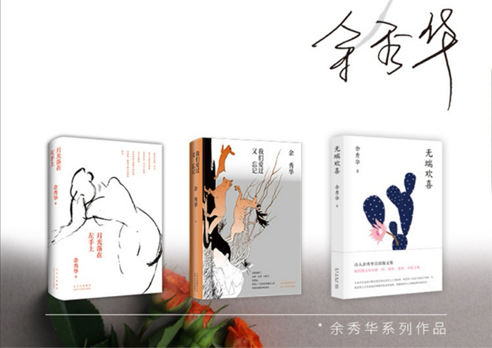 回顾余秀华这一路,《诗刊》编辑刘年刊登“一位脑瘫诗人的诗歌”,《穿过大半个中国去睡你》得以刷爆朋友圈。紧接着,诗集《月光落在左手上》在走红一周后出版。不久后,诗集《摇摇晃晃的人间》、《我们爱过又忘记》,散文集《无端欢喜》也陆续和读者见面。一时间,脑瘫诗人、农民诗人这些标签被贴到她的身上。虽然她不喜欢被人强调“脑瘫”、“农民”,但好在余秀华成了诗人余秀华。