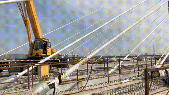 目前,番海大桥项目主桥塔柱施工完成;主梁番禺侧完成13个梁段,南海侧完成主梁合拢,斜拉索已挂设104道。项目已完成整体工程项目进度的70%。