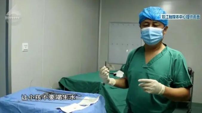 主治医生介绍:“这个蚂蟥是从这个5岁多的小孩声门下取出来的,估计这个小孩气难喘,就是蚂蟥引起的,他可能之前有喝生水的情况。”