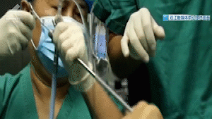 病床上的男孩就是小陶,医生正在对他实施手术治疗。没多久,医生就从小陶的气管内,取出了一条长约六七厘米的黑色活体异物。