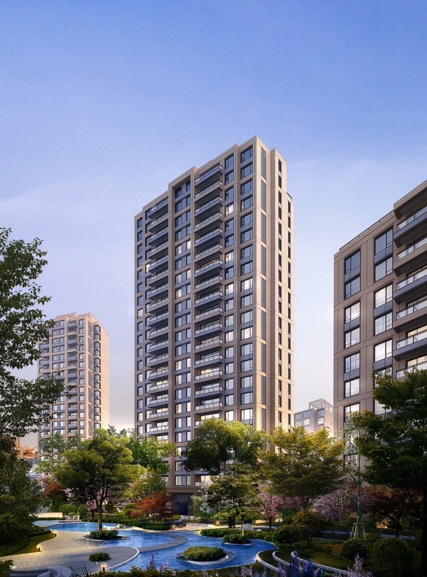 这种高低错落的形制取材于伦敦的塔桥壹号,为了打造苏州河静安段的标杆,设计团队在考察世界各地滨水住宅后,最终从伦敦泰晤士河畔的塔桥壹号撷取灵感,将三幢叠加建筑安放于滨河一线位置,三幢高层耸峙于叠加之后,将苏州河水超大限度地纳入到整个项目,尽可能保证每一扇窗口都饱览迷人河景,让河水成为项目的一部分,荡漾在生活的每一个瞬间。