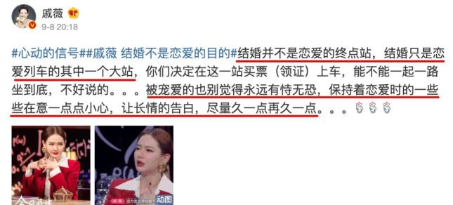 虽然很多网友认为这番话太“毁三观”,毕竟谁不期望自己拥有长长久久的完美婚姻呢?可戚薇也道出了感情的真谛: