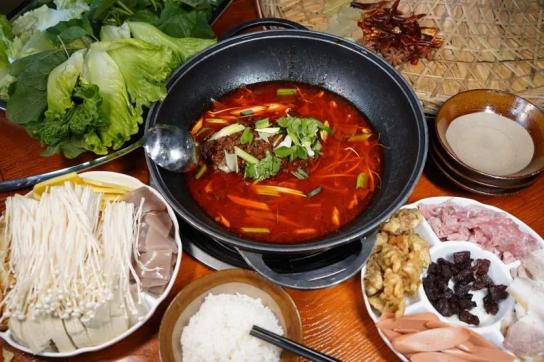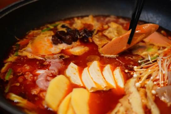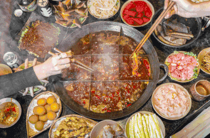 图源贵阳怪手酸辣烫可以煮一般的蔬菜和肉类,酸汤鲜美,是最受贵州人喜爱的火锅之一。
