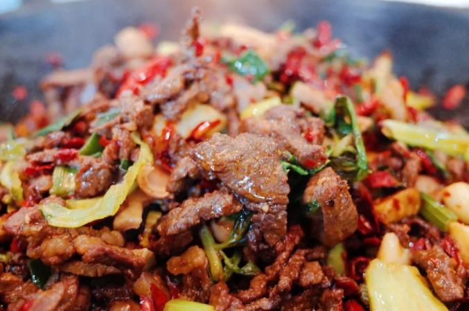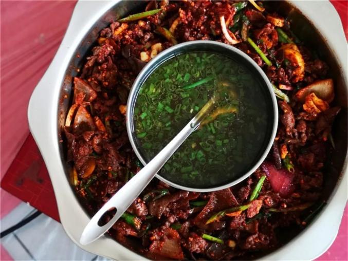 牛肉在贵州人的餐桌上也是一道必不可少的美食,盘州的牛肉因为肉质鲜美,营养价值极高而被当地人喜爱,每逢外地好友到此做客,他们都会推荐去吃吃当地最美味的干锅牛肉。