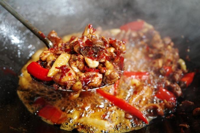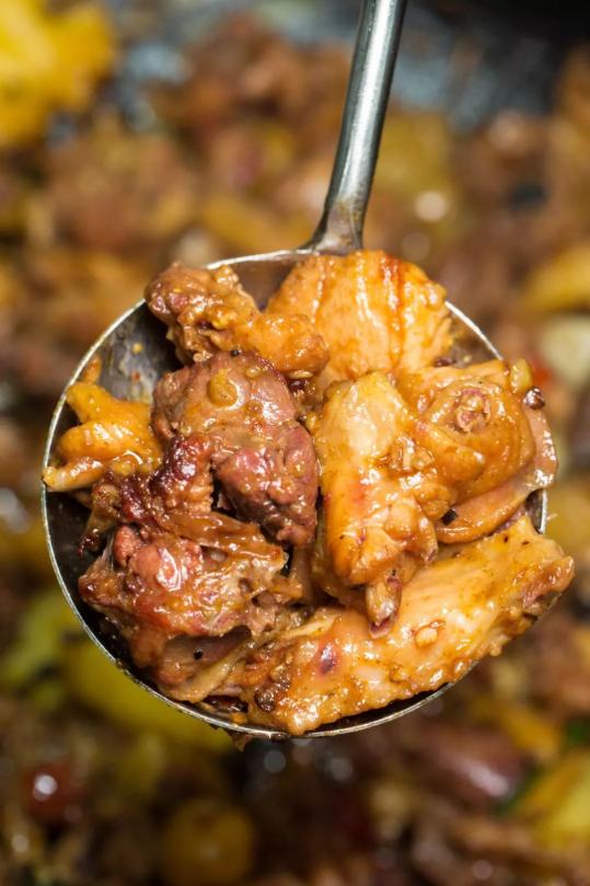 摄影:周羽舒肉紧、糯,有嚼头,鸡香味突出,肉质紧而不柴,鸡块骨肉分离,一口咬下,轻轻松松就能扯出肉“丝”。贵州辣子鸡历史有数百年,以独特的香辣风味,稳坐传统黔菜中的头把交椅。