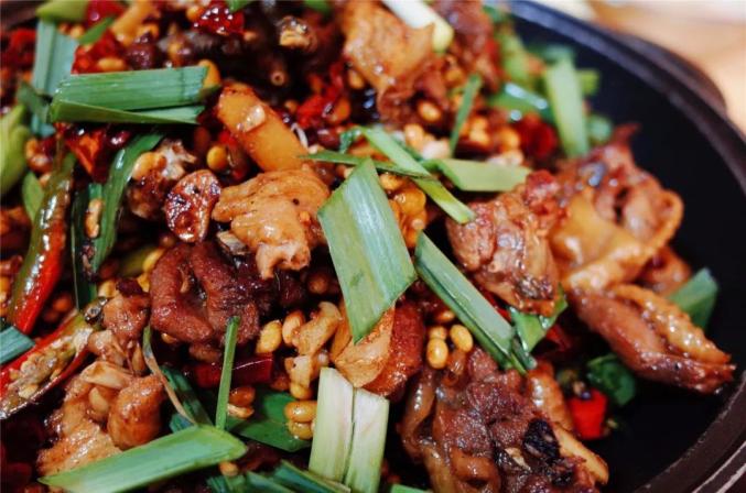 摄影:周羽舒作为罗甸布依族待客的最好佳肴之一,黄豆鸡这道菜就此诞生。酥松的黄豆浸着满满的鸡汁,清香嫩爽的鸡肉散着淡淡的豆香,就着小火慢慢浸出来的鸡油细细地将黄豆与鸡骨头炸脆。