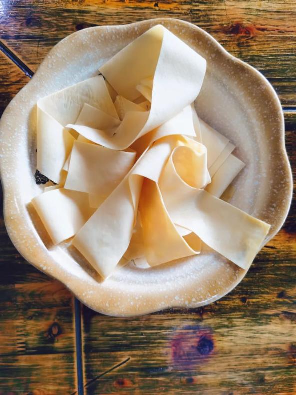 摄影:周羽舒习水豆腐皮有点像薄面块,但更入味、滑爽,同时又保留了豆子的清香,很有特色。