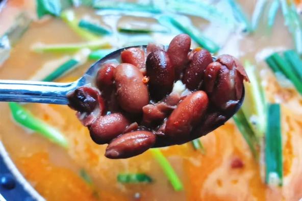 豆米选用的是贵州特色花豆,也称为“四季豆米”。花豆中含有丰富的蛋白质、维生素和多种人体必需氨基酸,经慢火细熬后,豆米变得浓稠绵软,吃起来沙沙面面的,十分下饭。