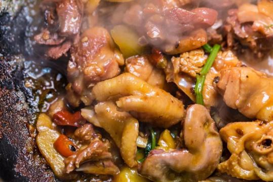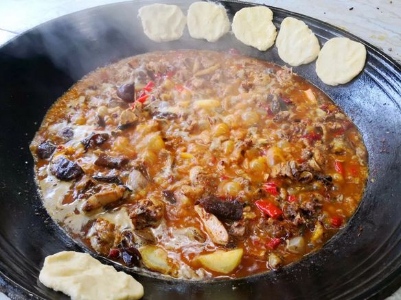 砖垒土灶、用木柴烧制现杀的土鸡,原生态、接地气,多多最喜欢的就是贴在锅周的玉米饼,黄黄的、糯糯的,配着香辣的鸡肉再合适不过了!