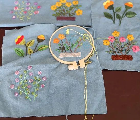 近日,方松巧手布艺班的学员们的新作品——手工刺绣手拿包终于完成啦,学员们在指导老师李艳秋的带领下,从练习刺绣图案到手包缝合完工,开展了2个多月学习交流。