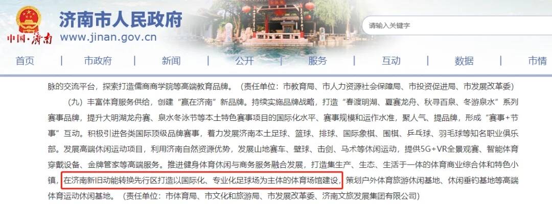 其实早在今年5月份,济南市发布的文件中明确提出:“在济南新旧动能转换先行区打造以国际化、专业化足球场为主体的体育场馆建设。”