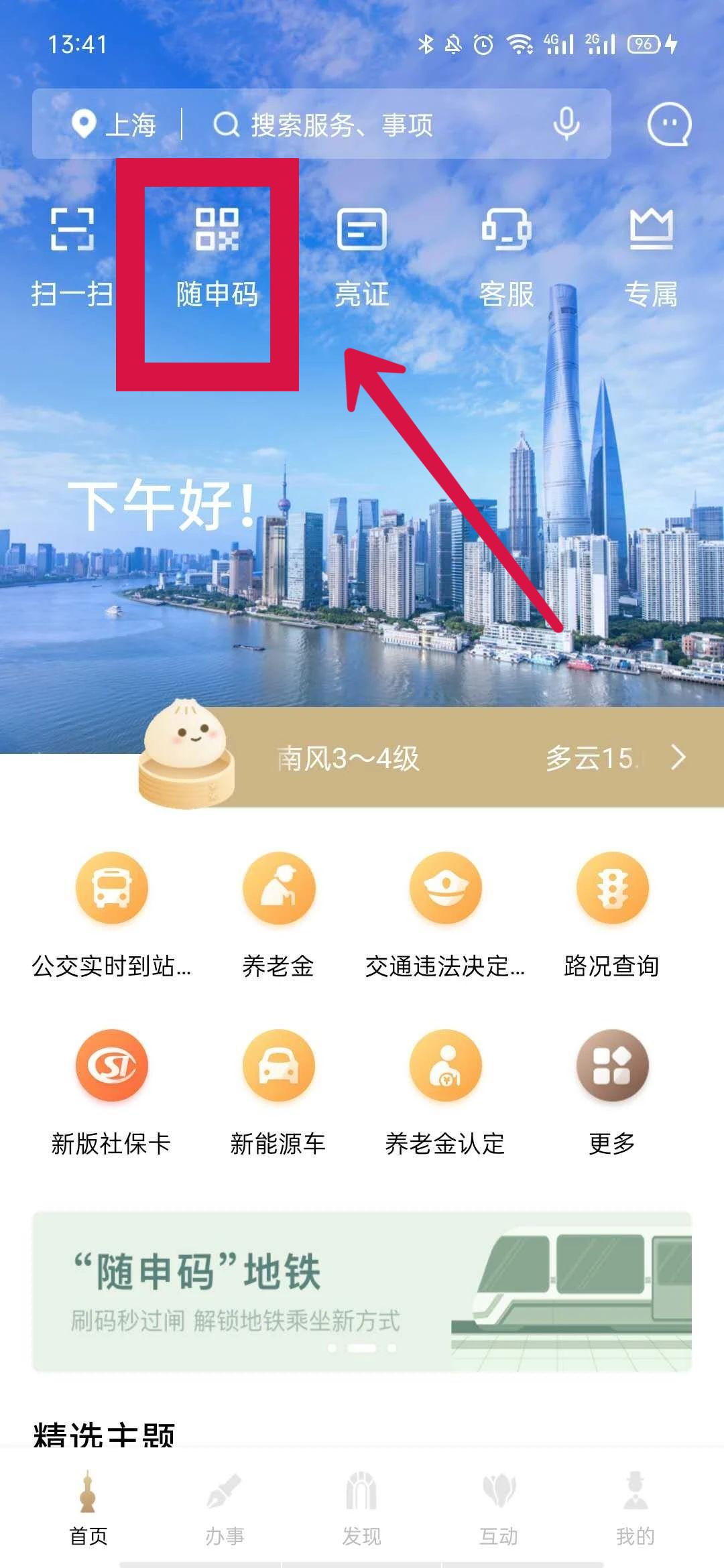 点击下载→随申办市民云APP,开通你的乘车码