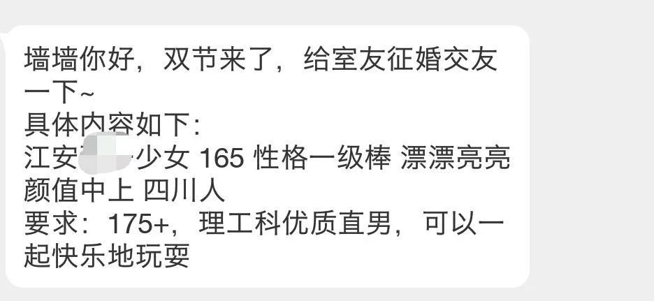 “本人颜值一般偏好看一点,希望小姐姐160cm+,60kg-”