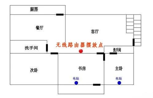 最好将路由器摆放在房屋中央,尽量让无线信号在发射过程中少穿墙。