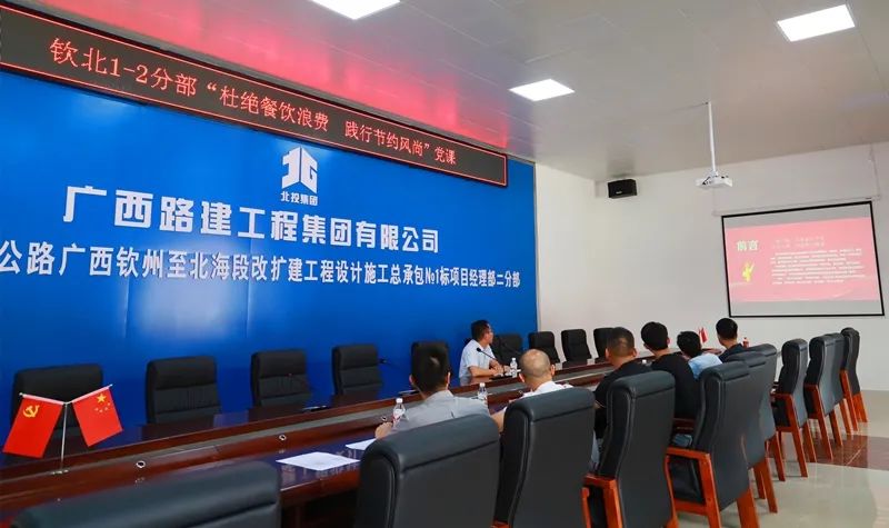 广西工程咨询集团接力“光盘”广西路建集团钦北1-2分部开展“杜绝餐饮浪费,践行节约风尚”的主题党课