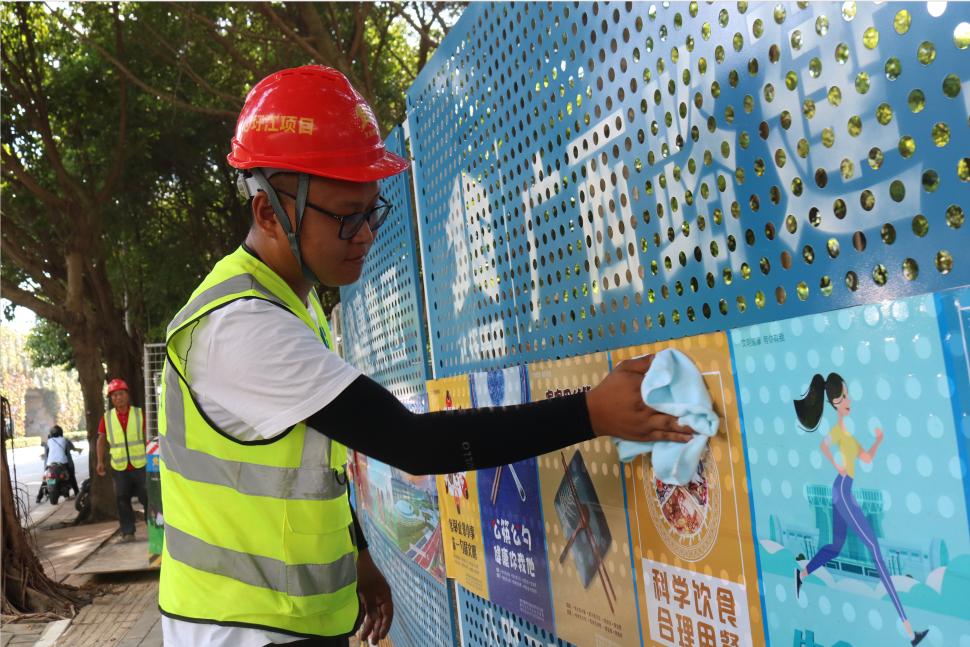 心圩江项目在施工围挡上张贴“厉行节约、反对浪费”宣传海报02